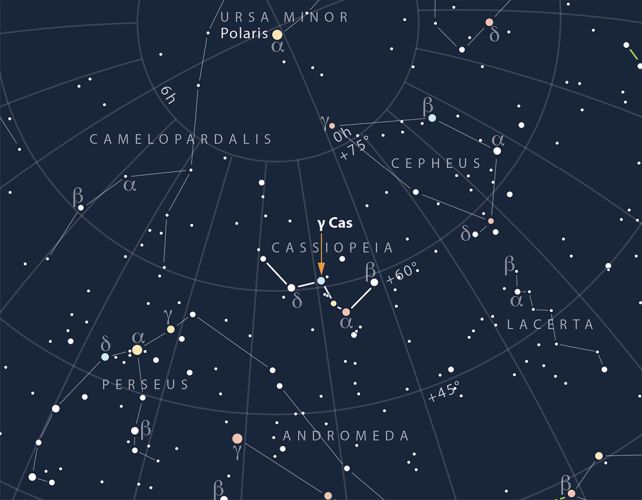 The celestial placement of γ Cas within the northern firmament. (Astronomy Now/Greg Smye-Rumsby)