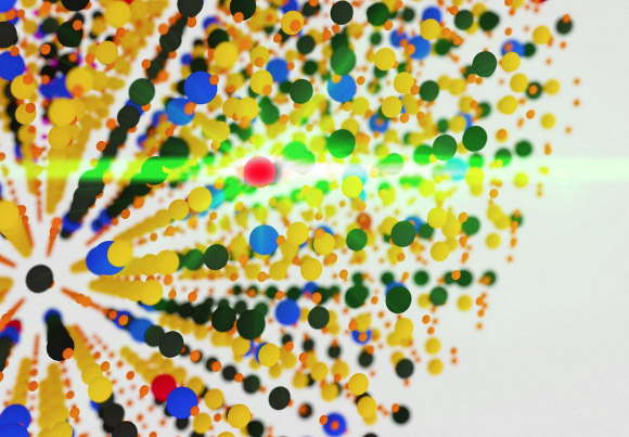 Illustration of the atomic arrangement within a single lanthanide-doped nanocrystal; each lanthanide ion can emit light. Image credit: Andrew Mueller / Columbia Engineering.