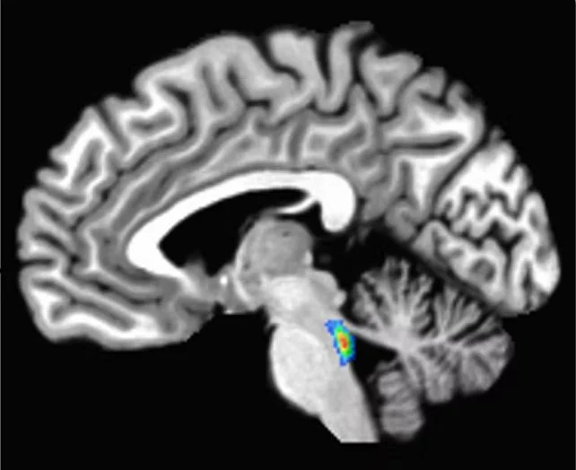 The locus coeruleus, a region colloquially known as the ‘blue spot,’ is anatomically situated within the brainstem. (Elizabeth Riley/CC BY-SA 4.0)