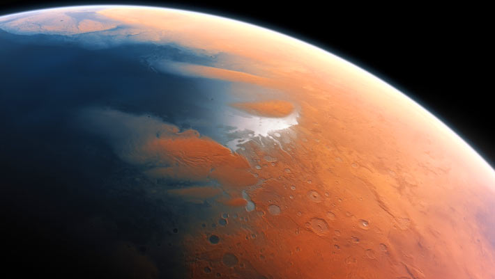 This artist’s impression shows how Mars may have looked about 4 billion years ago. Image credit: M. Kornmesser / ESO.